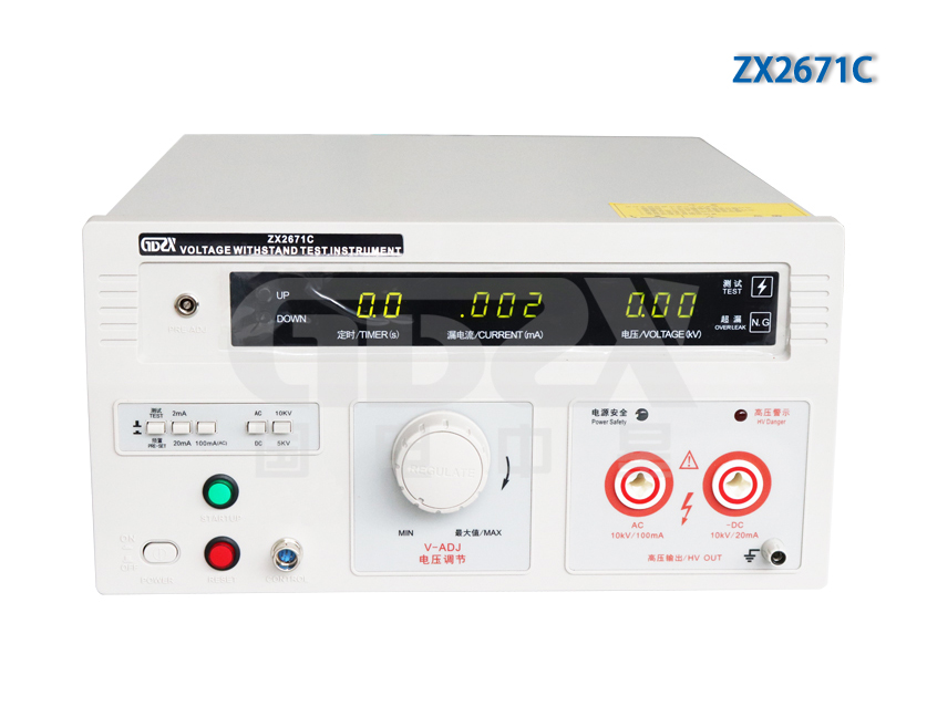ZX2671A輸出電壓為10kV,測(cè)試電流為交流20mA,直流為10mA的交直流耐壓測(cè)試儀
